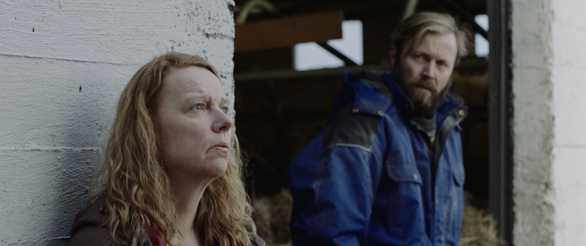 Set in rural Iceland, “The County” unfurls as if Ken Loach found himself near the Arctic Circle, looked around at the myriad villages and struggling farms, and thought, “Hm, I wonder if there is a labor struggle to found here!” There is. Inga (Arndís Hrönn Egilsdóttir) and her husband Reynir (Hinrik Ólafsson) have run a struggling dairy farm for years. It was Reynir’s dream to take over his parents’ family farm, Dalsmynni, and so that is what he and Inga do. It is endless, backbreaking work. Inga midwifes a calf in the morning, pulling the baby by its hooves outside of its mother’s body and then checking that both are OK; then she checks their robotic milking system to make sure that it’s functioning correctly; then she goes over the books. Reynir delivers hay, tends to the field, and also listens while Inga rightfully worries that although they’re working themselves to the bone, the farm is practically bankrupt anyway.